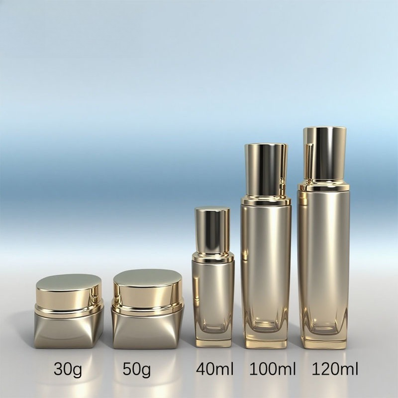 Jinguan Packaging supply high-end in-stock glass cosmetic packaging suitable for skincare sets.