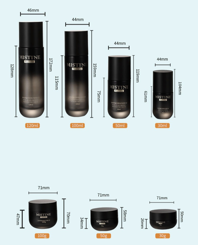 Capacities (Bottles): 30ml, 50ml, 100ml, 120ml.
