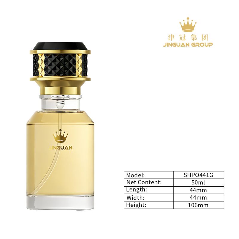 Its hexagonal cylindrical bottle body offers sharp, refined geometry, crafted from high-clarity thick glass that beautifully refracts golden light from the fragrance within. The result is a radiant visual expression reminiscent of liquid gold.