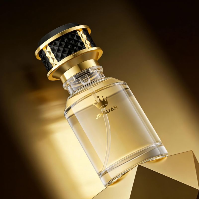 The golden perfume hue harmonizes with the metallic accents, enhancing the bottle’s grandeur and making it exceptionally eye-catching in retail displays or photography.