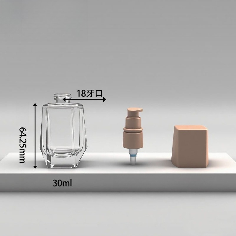 Add a geometric edge to your beauty line with our 30ml Diamond-Shaped Airless Pump Bottle. Crafted from crystal-clear glass, this bottle's sophisticated faceted design catches the light for a modern, high-end look that stands out in any collection.