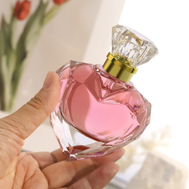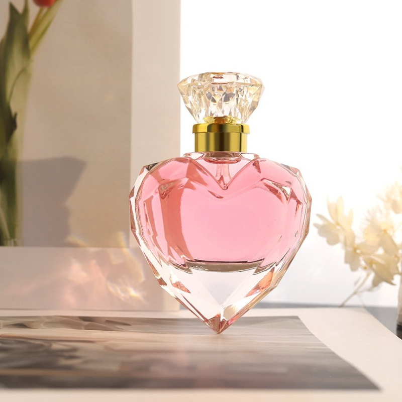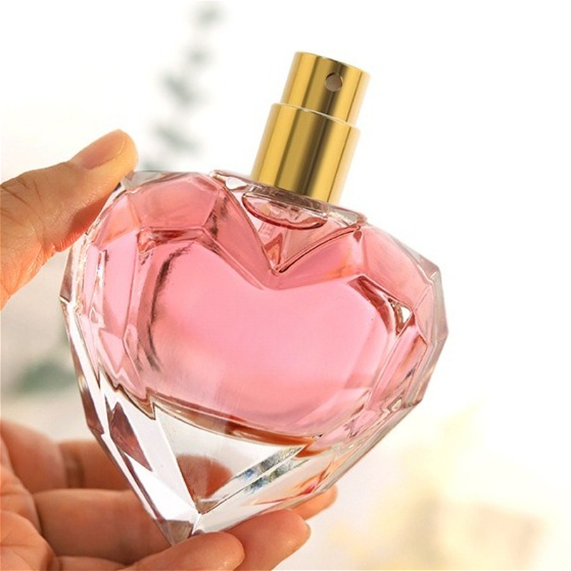The bottle is beautifully crafted into a classic heart silhouette from crystal-clear glass, creating a delicate and luxurious feel. It is fitted with a reliable fine mist sprayer that ensures an even, elegant application every time. The secure cap makes it ideal for carrying in a purse without leaks.