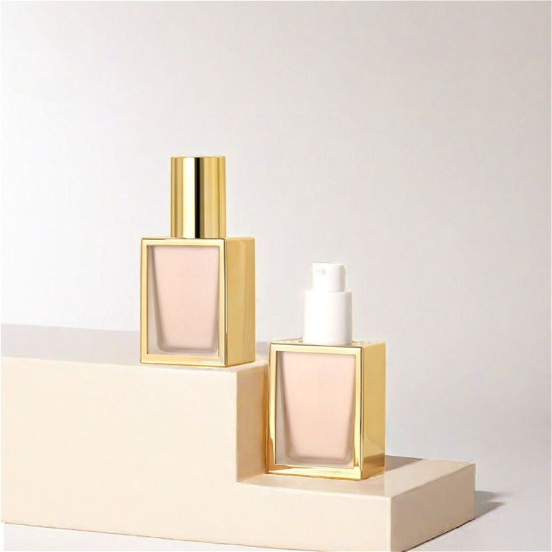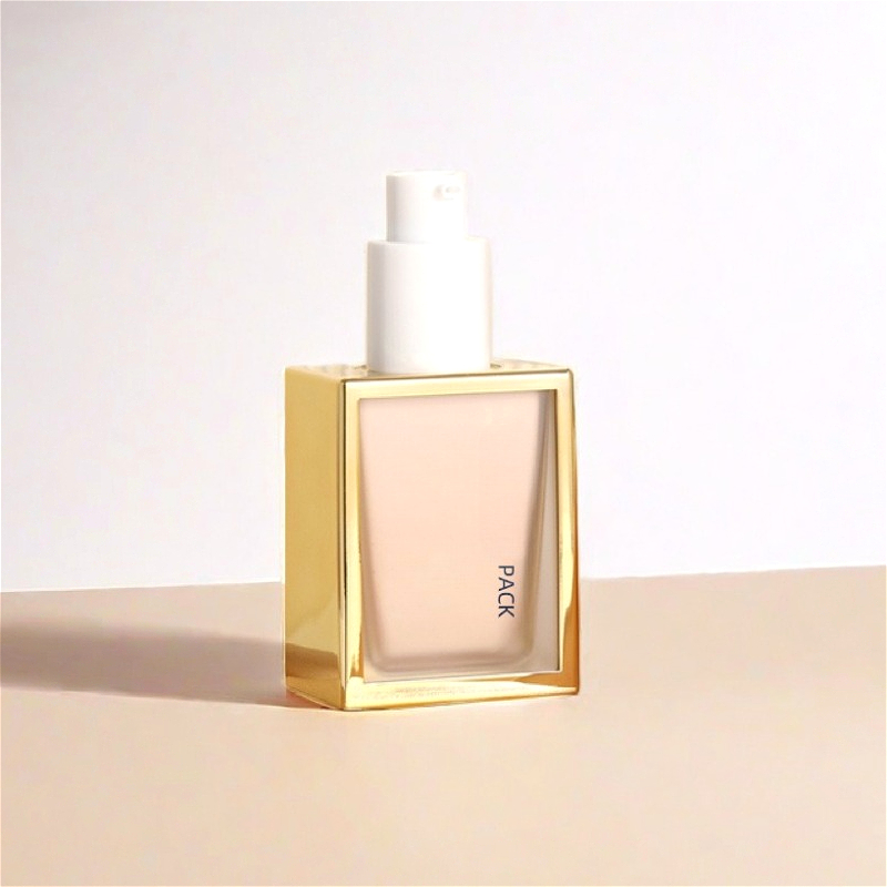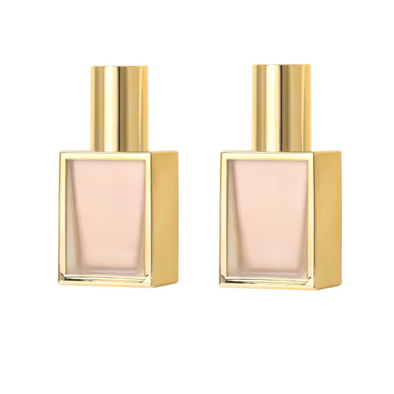 This is a 30ml high-grade square plastic foundation bottle with an elegant gold electroplated outer shell.