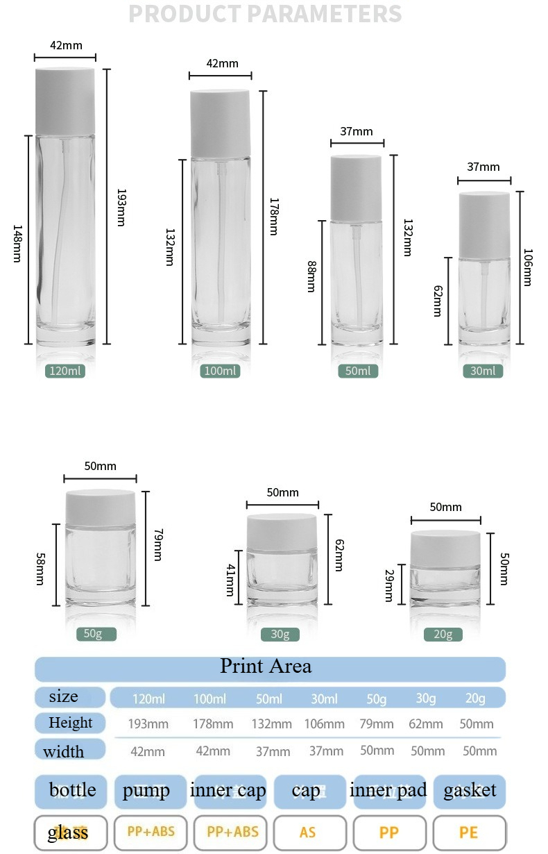 Every piece in this collection is made from high-transparency, premium glass that protects your formulas and showcases their true color and texture. The substantial thick glass bottom provides a stable, luxurious feel in the hand. The minimalist design puts the focus squarely on your product, making it perfect for brands that value purity, simplicity, and sophistication.