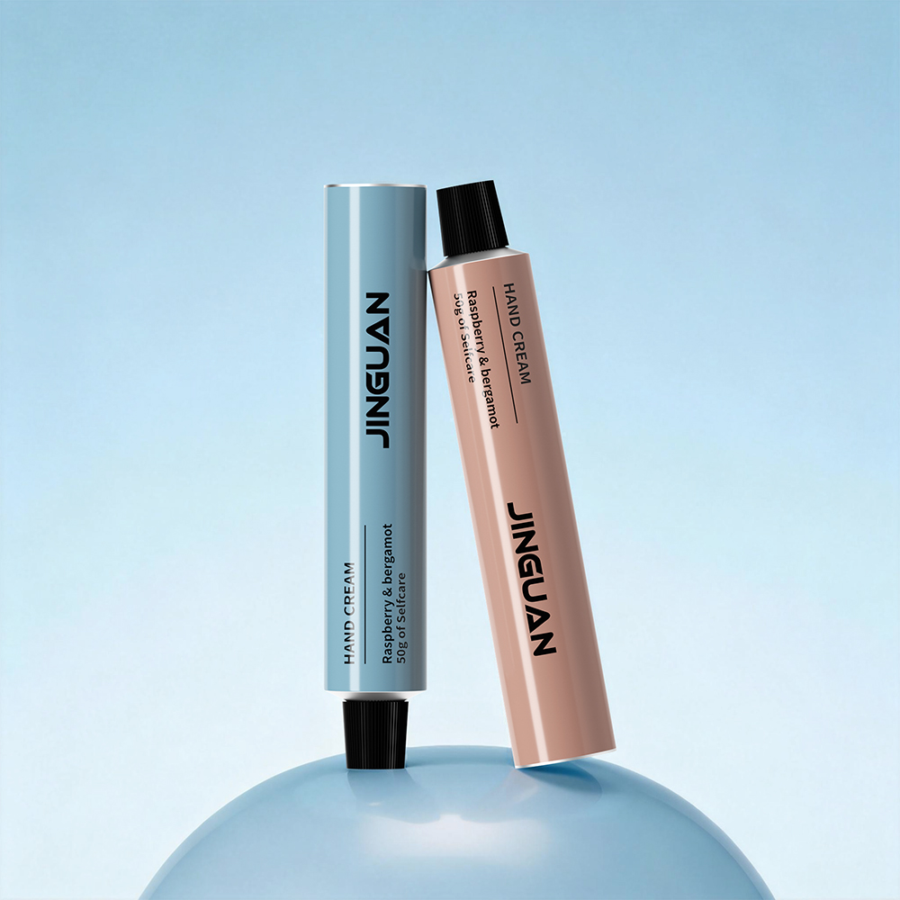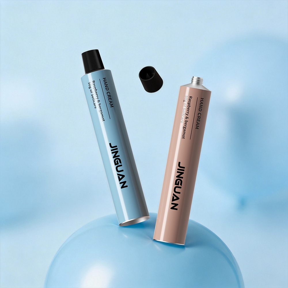 This pure aluminum hand cream tube is a premium packaging solution for beauty brands. It features a smooth, glossy aluminum body available in three vibrant colors: soft pink, light blue, and fresh green, all paired with a sleek black cap. The aluminum material offers excellent barrier properties, protecting the hand cream from light and air to maintain product freshness and efficacy. The tube’s minimalist design with bold branding creates a high-end aesthetic that stands out on retail shelves.
