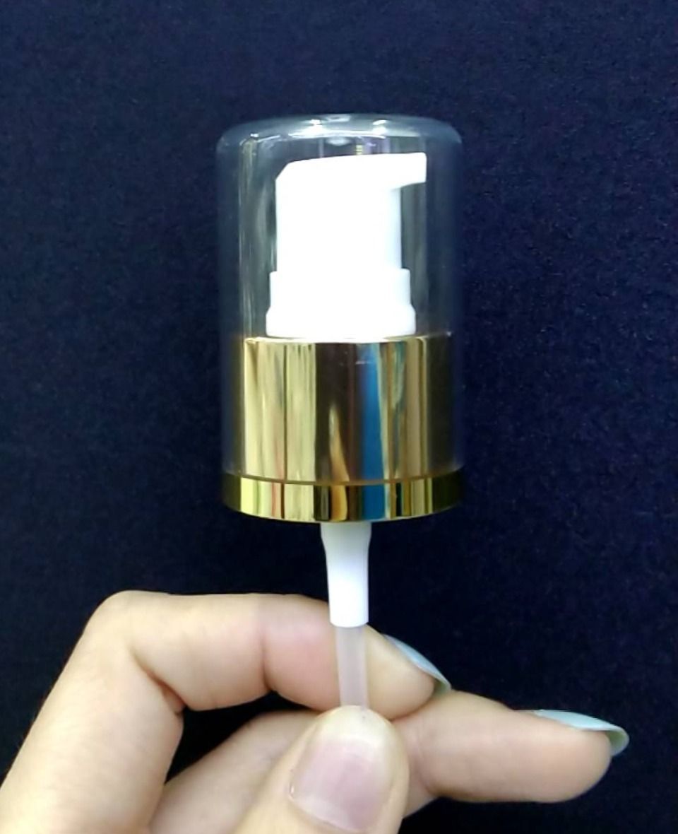 This makeup remover pump is designed for effortless and hygienic dispensing of cleansing liquids, toners, and micellar water. With a smart press-down design and leak-proof construction, it provides precise control and convenience for both home and professional beauty salon use. Crafted from high-quality PP material with a metallic decorative collar, it combines elegance, durability, and functionality — perfect for high-end cosmetic packaging.