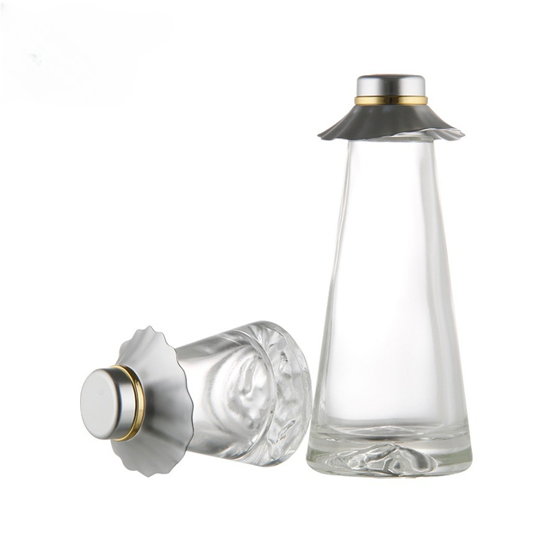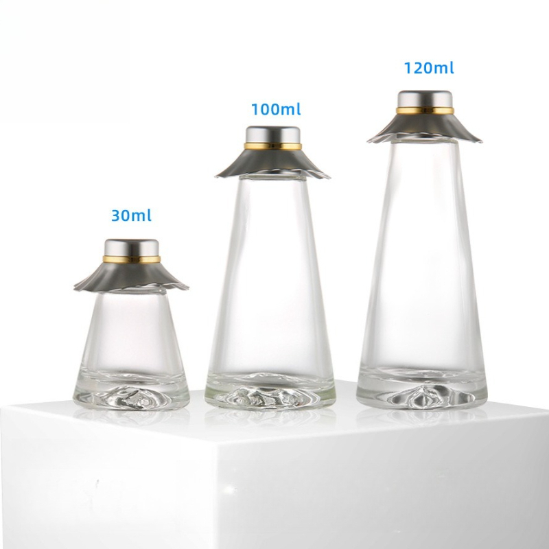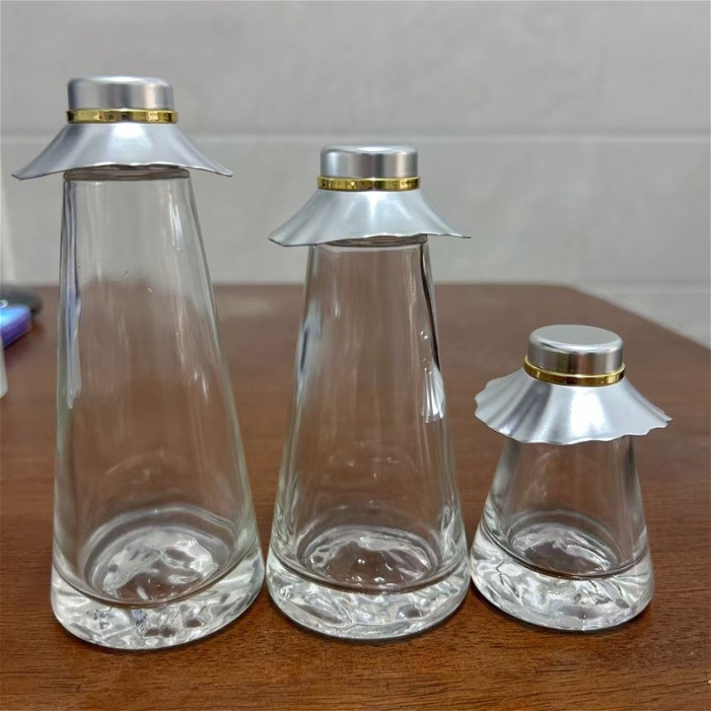 Make your brand stand out with our unique cone-shaped glass bottles, featuring a striking volcanic base and elegant straw hat-style electroplated silver screw caps. This combination creates a premium, eye-catching look that sets your products apart on any shelf.