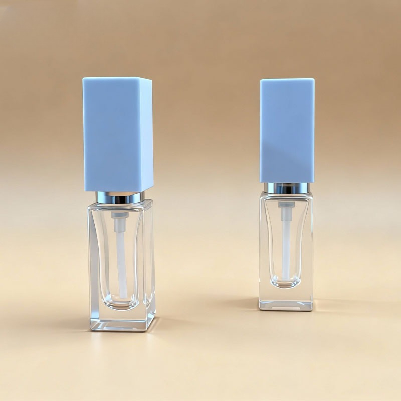 This is a new 7ml square clear glass bottle designed for lip gloss, lip oil, lip serum and lip glaze.