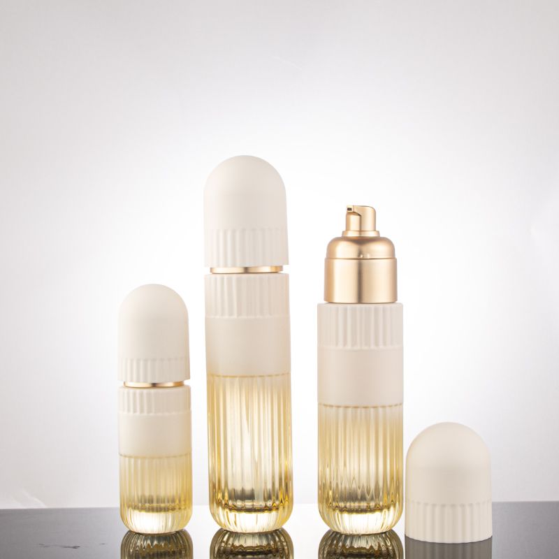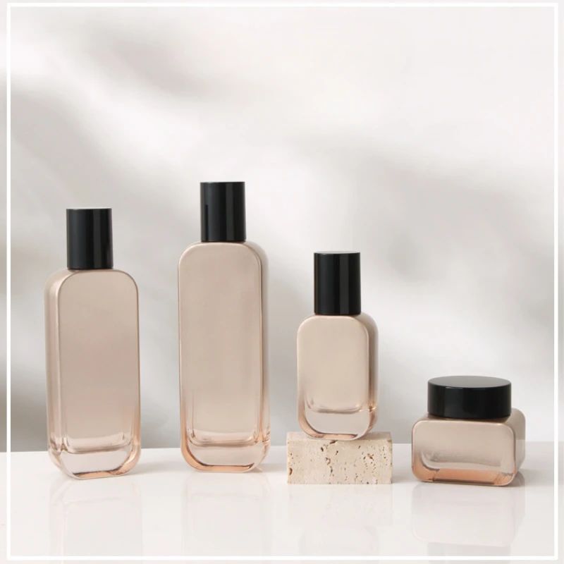 This cosmetic glass bottle interprets the way of high - end skin care packaging with excellent materials and elaborate design. The dark - colored glass gives the contents a "light - avoiding umbrella" to protect the activity of ingredients; the metal - textured parts and press design are both beautiful and practical, making each skin care operation elegant and calm. Various specifications are suitable for the brand's diversified product lines. From essence water to essence milk, it creates an exclusive "exquisite container" for skin care products, helping the brand convey a professional and high - end skin care concept and bringing consumers a skin care companion with both quality and experience.